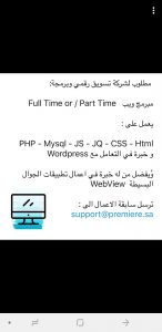 مطلوب لشركه تسويق رقمي وبرمجه وظيفه مبرمج ويب