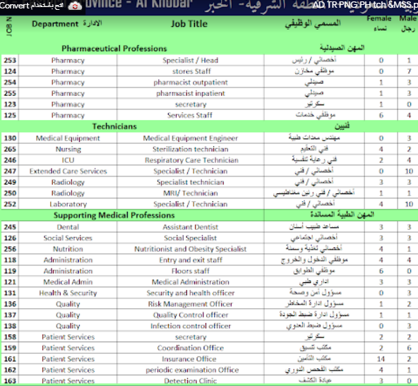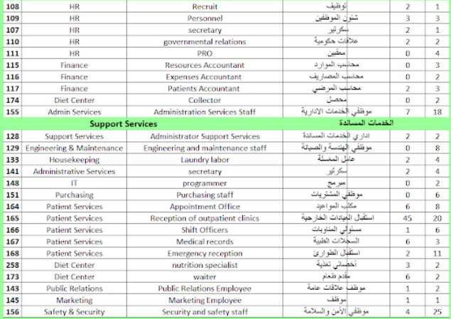 إدارية و صحية نسائية ورجالية في التخصصات التالية كما في الصور