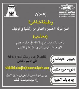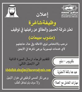 اعلنت شركة الحسين والعفالق عن توفر وظائف في الاحساء بالتفاصيل التالية