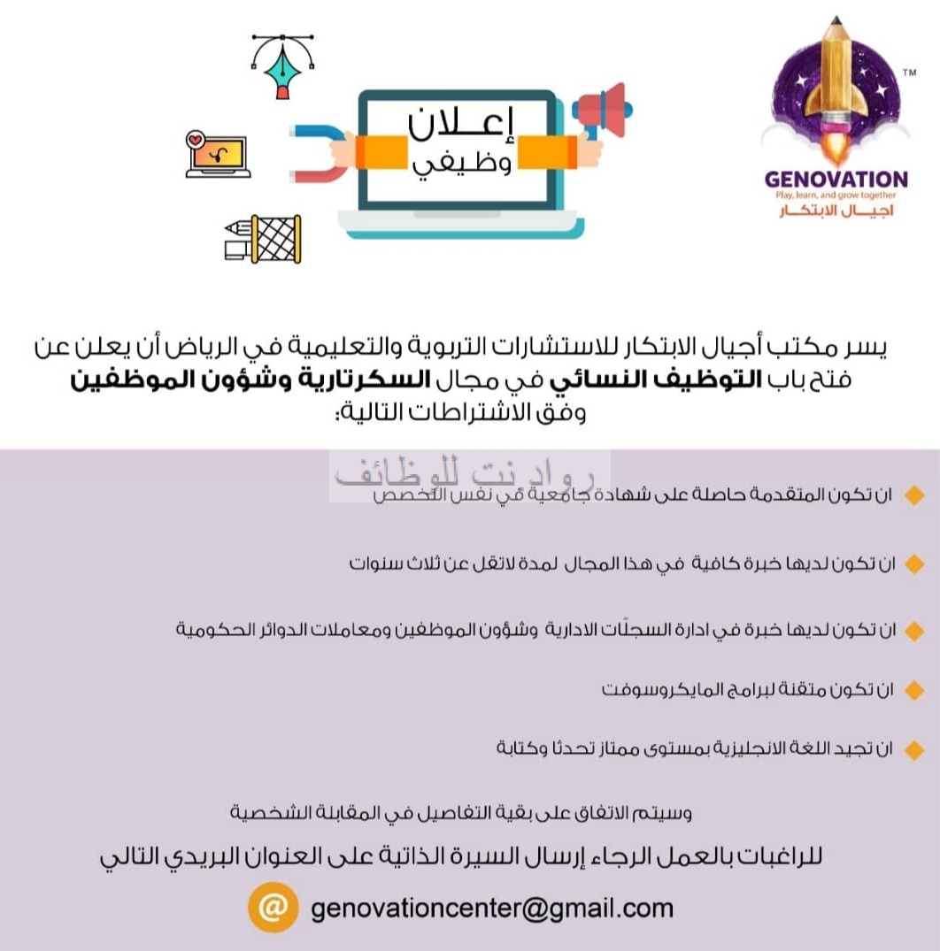 يسر مكتب اجيال الابتكار عن فتح باب التوظيف النسائي في مجال