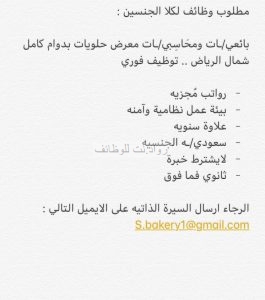 وظائف بائعين وبائعات حلويات في شمال الرياض