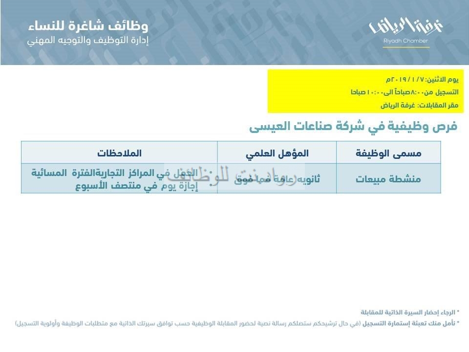 هذه فقط الوظائف النسائية لهذا الاسبوع من غرفة الرياض