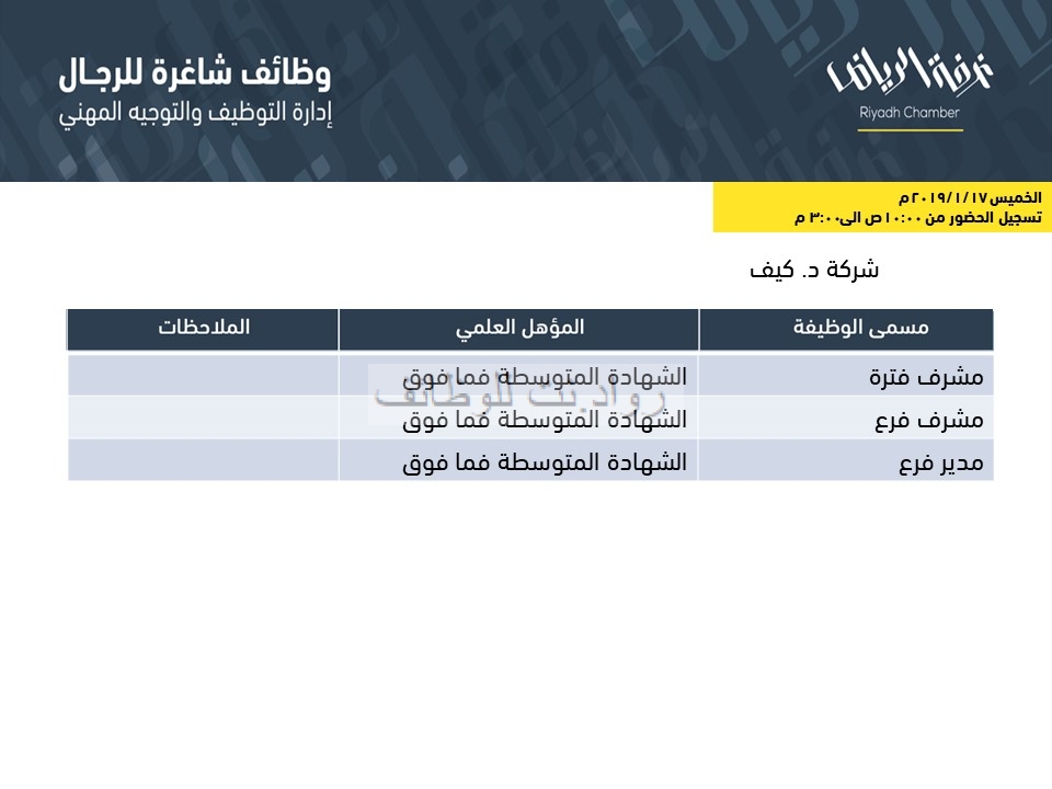وظائف الكفاءة المتوسطةوظائف غرفة الرياض
