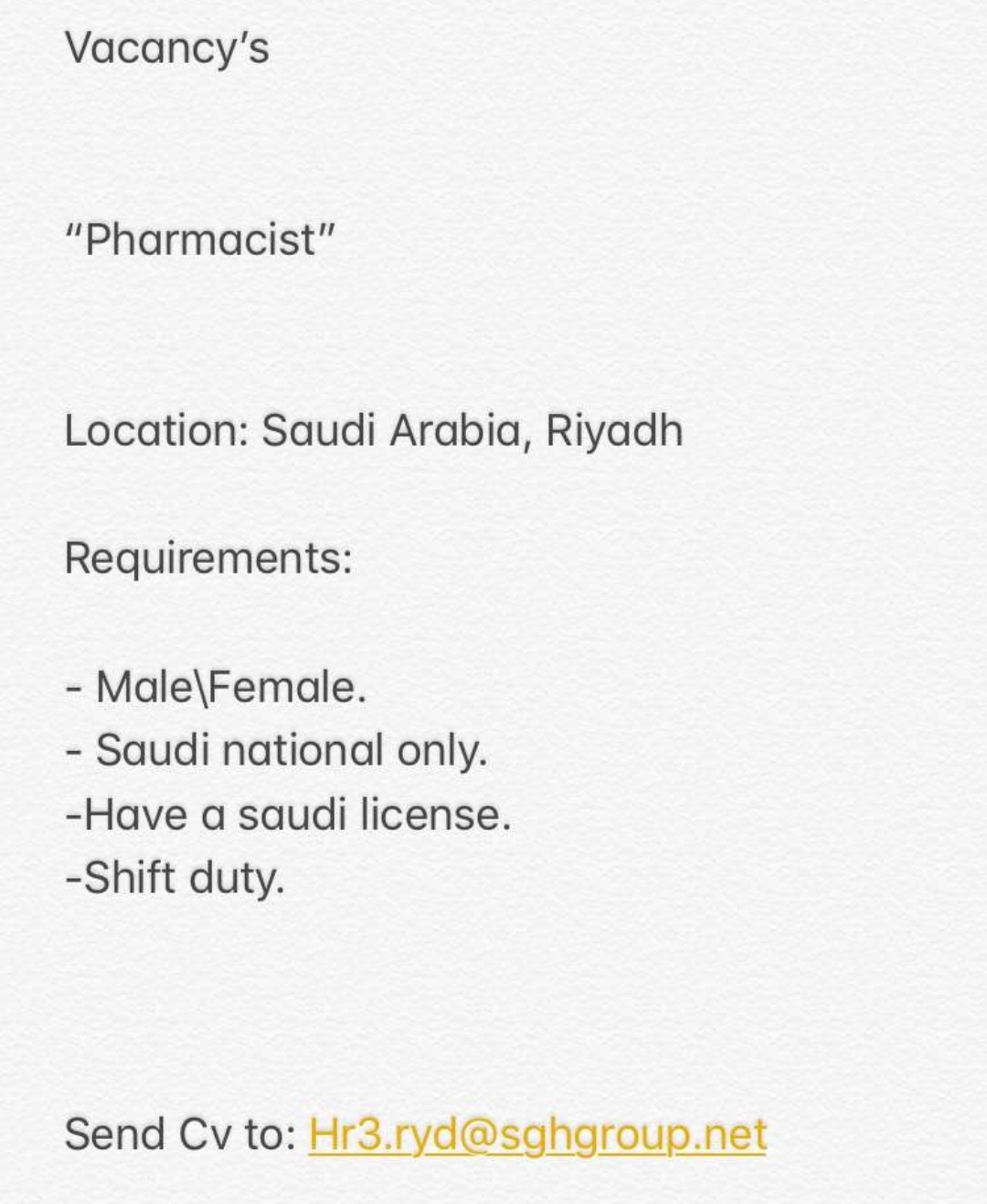 اعلنت احد الشركات عن وظائف صيادلة في الرياض