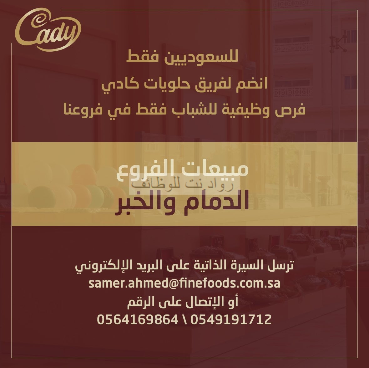 حلويات كادي وظائف مبيعات في الخبر و الدمام