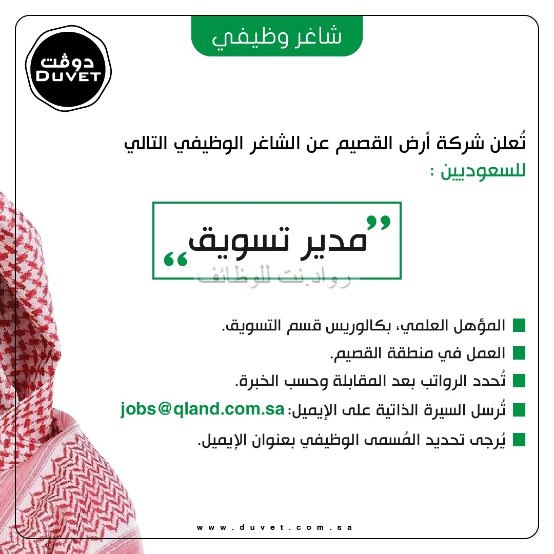تعلن شركة ارض القصيم عن الشاغر الوظيفي بمسمى