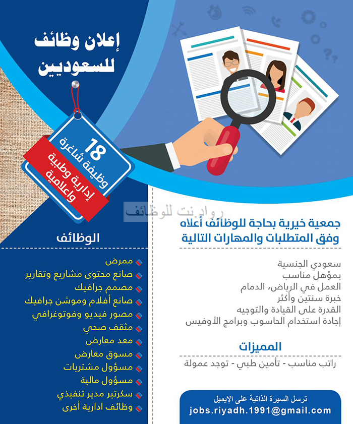 اعلنت الجمعية الخيرية لمكافحة التدخين عن وظائف رجالية ونسائية في الرياض والدمام بالتفاصيل التالية