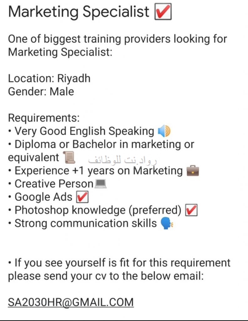 اعلنت احد الشركات عن وظيفة رجالية بمسمى اختصاصي تسويق