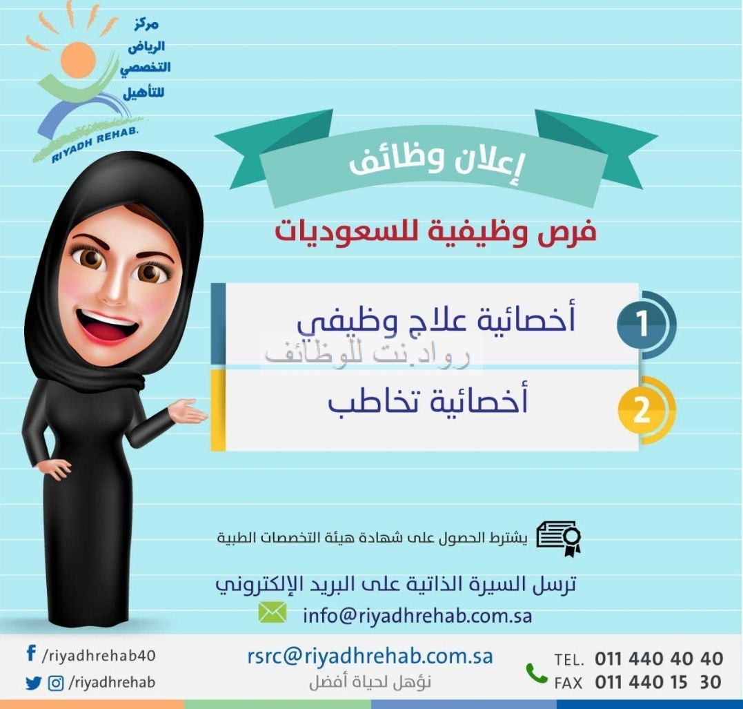 اعلنت مركز الرياض التخصصي للتأهيل عن وظائف للسعوديين بالمسميات التالية
