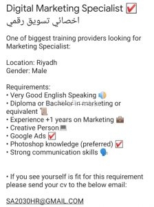 اعلنت احد الشركات عن توفر وظيفة بمسمى