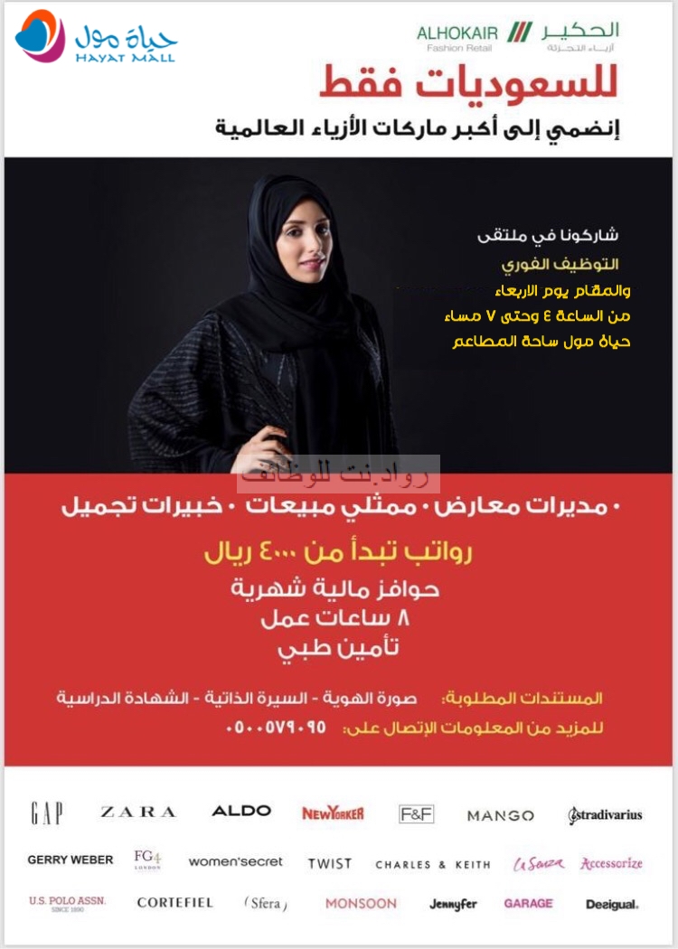 اعلنت الحكير لأزياء التجزئة عن ملتقى التوظيف يوم الاربعاء في الحياة مول – الرياض