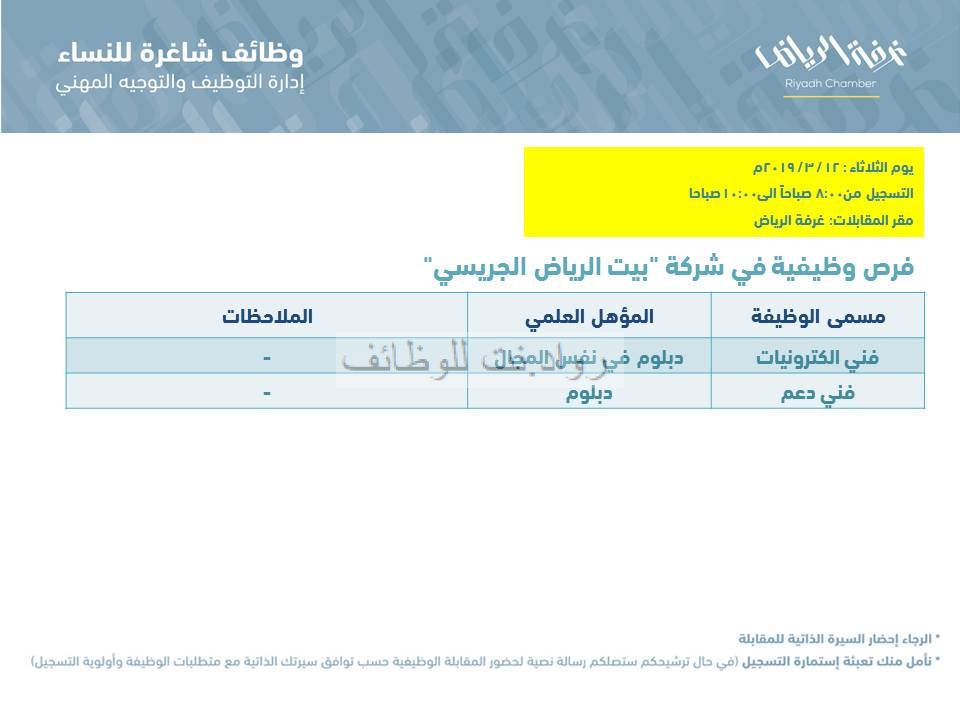 اعلنت شركة بيت الجريسي عن وظائف نسائية وذلك بالتعاون مع غرفة الرياض الوظائف بمسمى