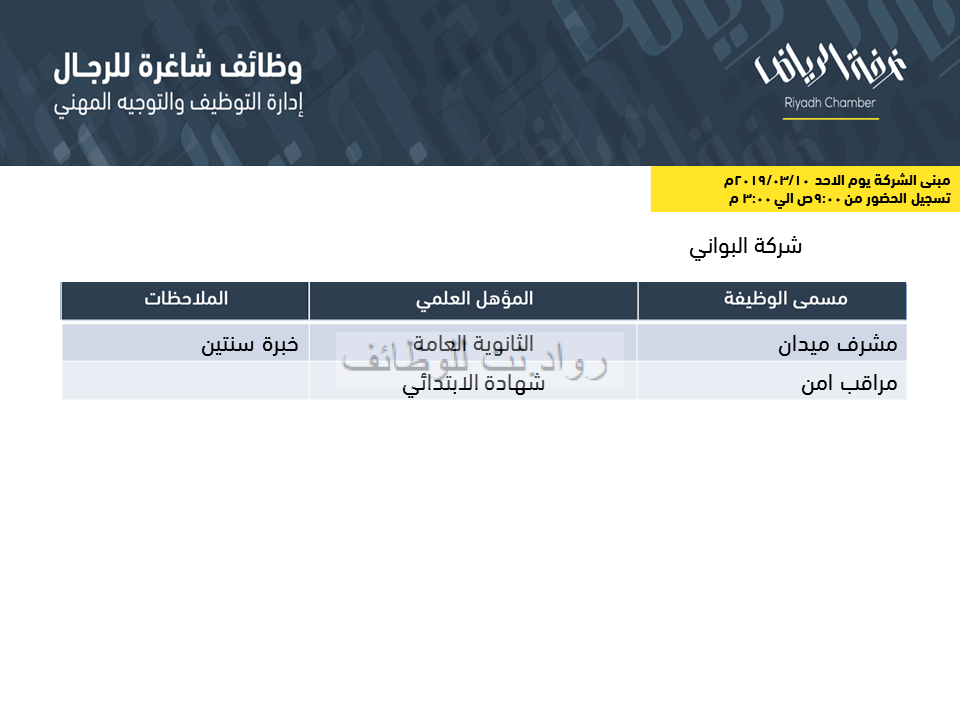 - مشرف ميدان المؤهل الثانوية العامة وخبرة سنتين