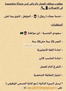 وظيفة خدمة عملاء في شركة تعمل في مجال الاتصالات بالرياض