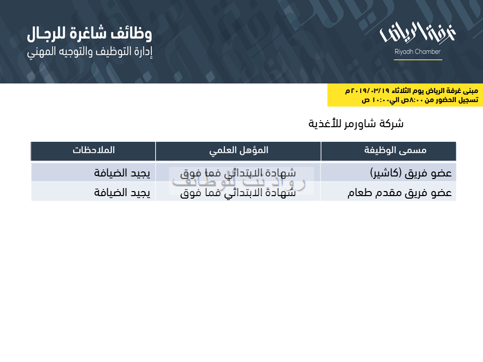 اعلنت شركة شاورمر عن وظائف في الرياض لخريجي الكفاءة المتوسطة والابتدائي والثانوي بالتفاصيل