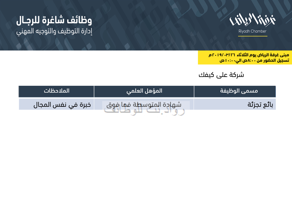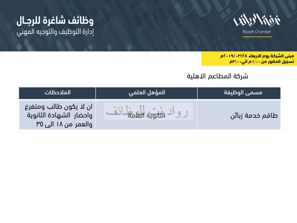 اعلنت غرفة الرياض بالتعاون مع شركات القطاع الخاص عن وظائف بالتفاصيل