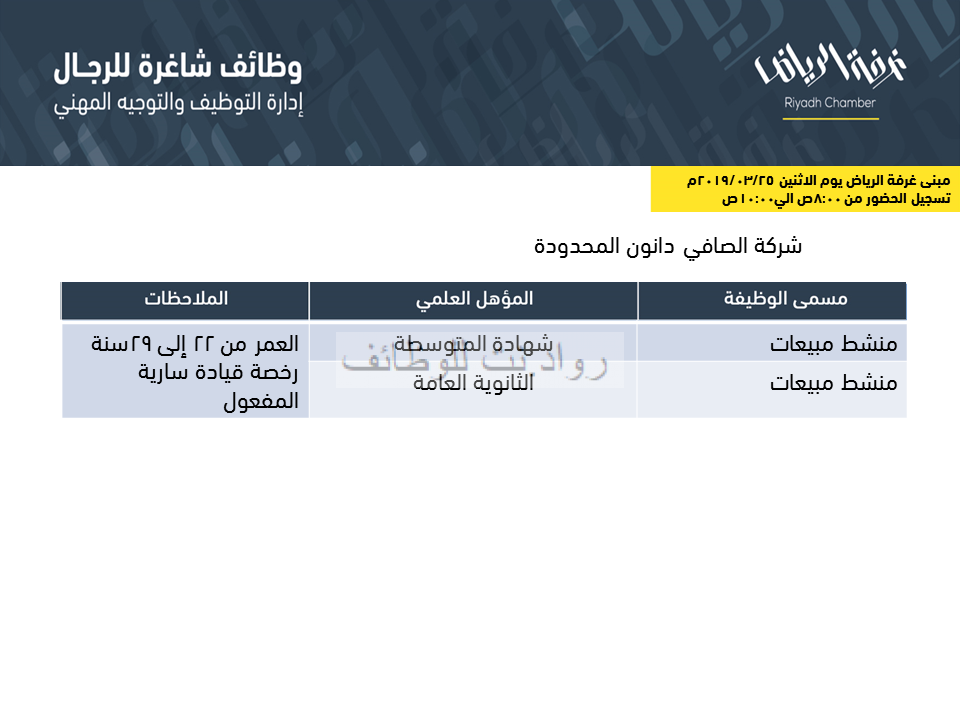 اعلنت شركة الصافي دانون عن وظائف في الرياض بالمسميات والتفاصيل