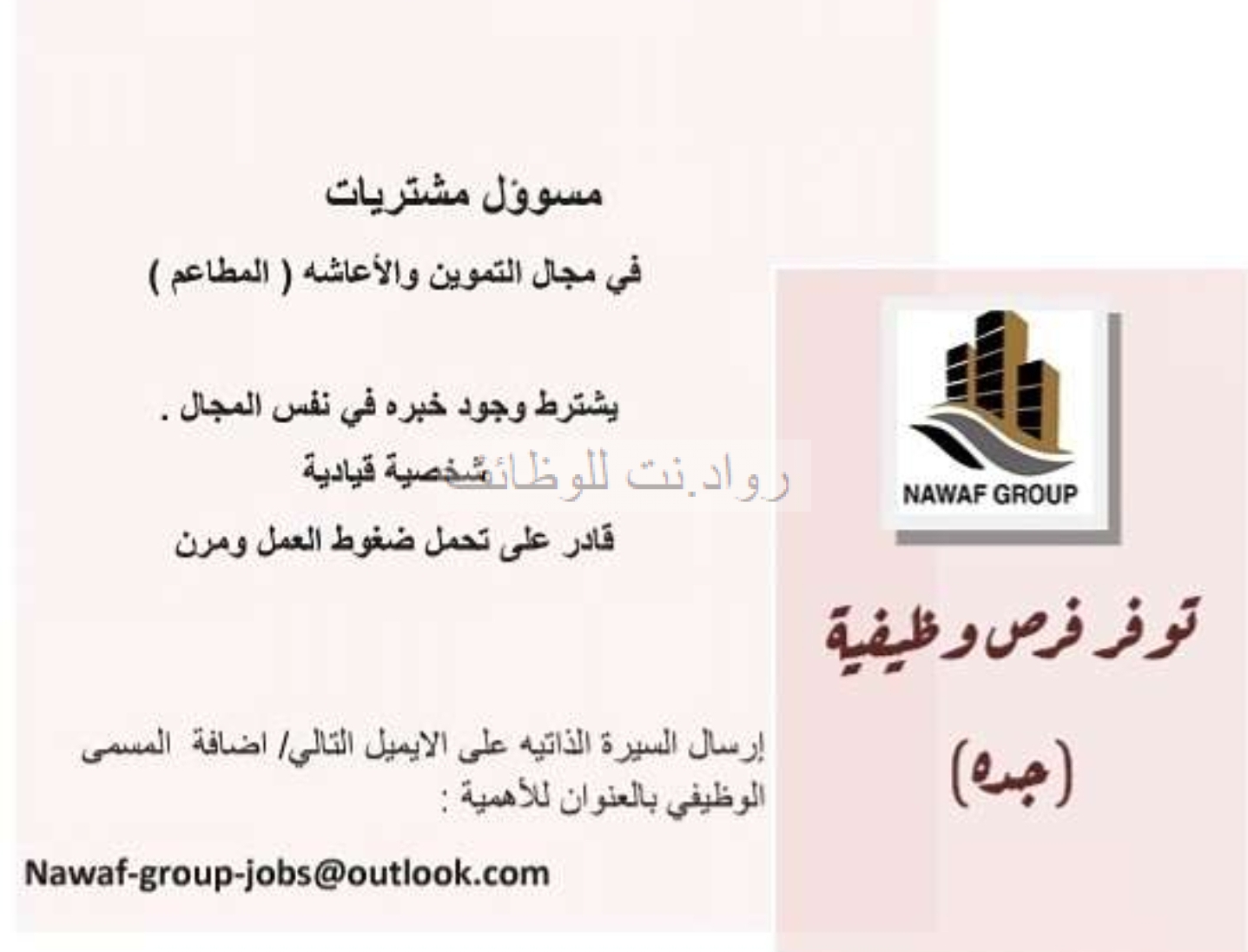 اعلنت شركة تعمل في مجال التموين والاعاشة المطاعم في جدة عن وظيفة بمسمى