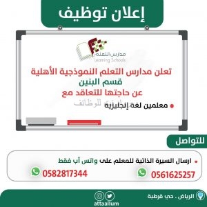 اعلنت مدارس التعليم النموذجية الاهلية قسم البنين
