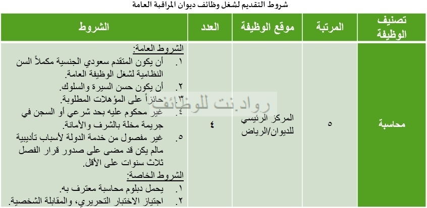 اعلن ديوان المراقبة عن وظائف محاسبين على المرتبة الخامصة بالتفاصيل
