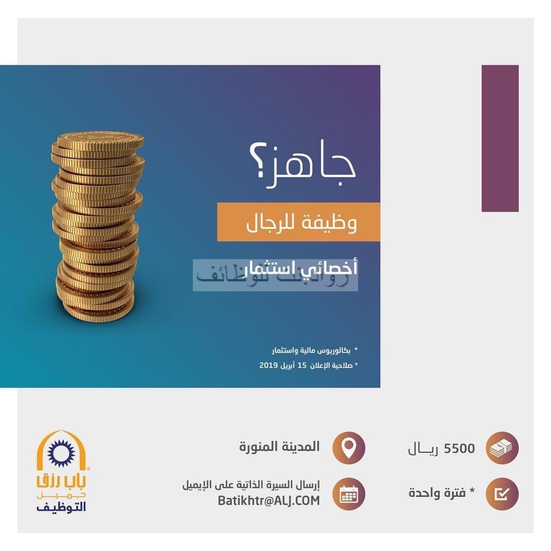 وظيفة اخصائي استثمار في المدينة المنورة راتب 5500 ريال