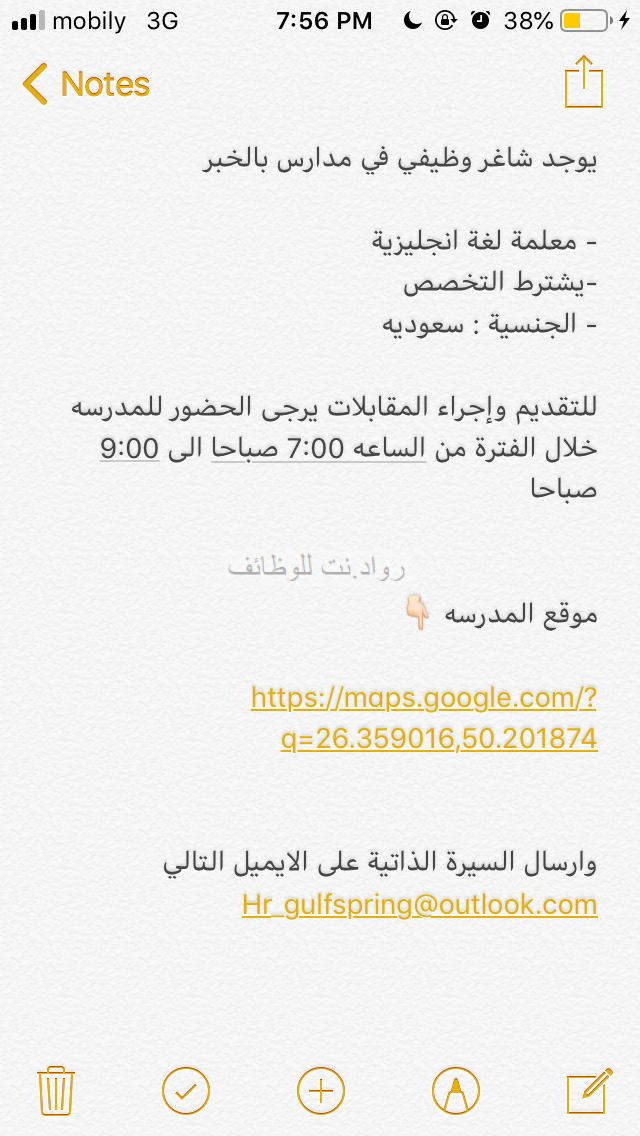 وظيفة معلمة لغة انجليزية في احد مدارس الخبر