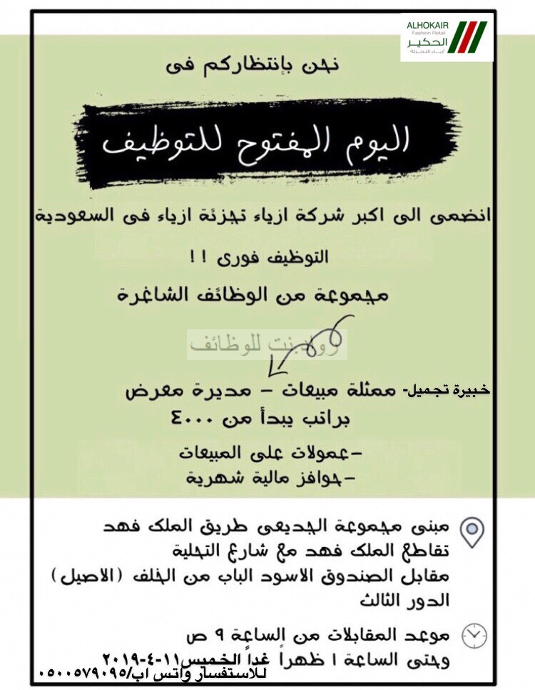 اعلنت الحكير لازياء التجرئة عن اليوم المفتوح للتوظيف في الرياض