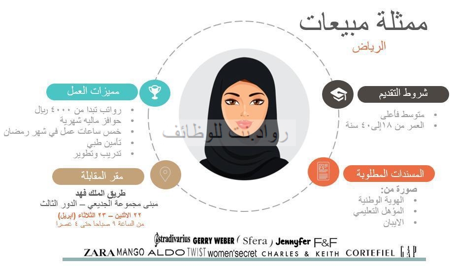 وظائف نسائية في الرياض بمسمى ممثلة مبيعات