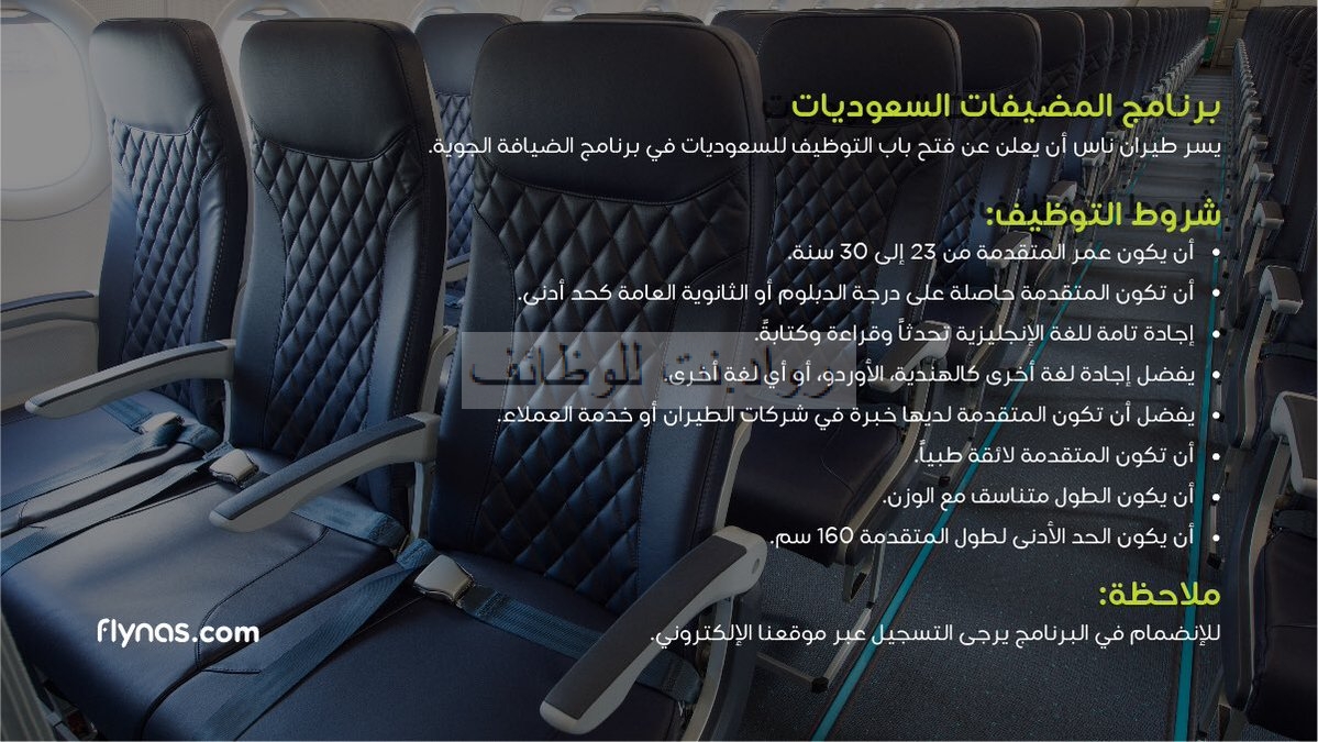 اعلنت شركة طيران ناس عن فتح باب التقديم على برنامج المضيفات السعوديات لعام 2019