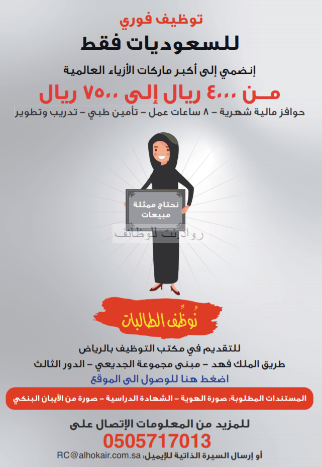 وظائف نسائية في اكبر ماركات الازياء العالمية في الرياض