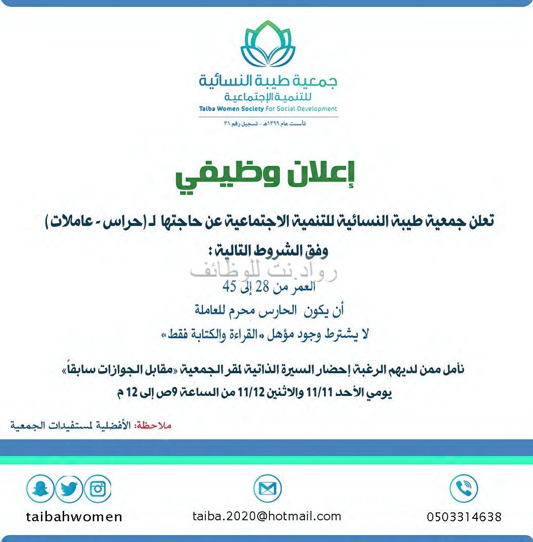 أعلنت جمعية طيبة النسائية في المدينة المنورة عن وظائف بالمسميات