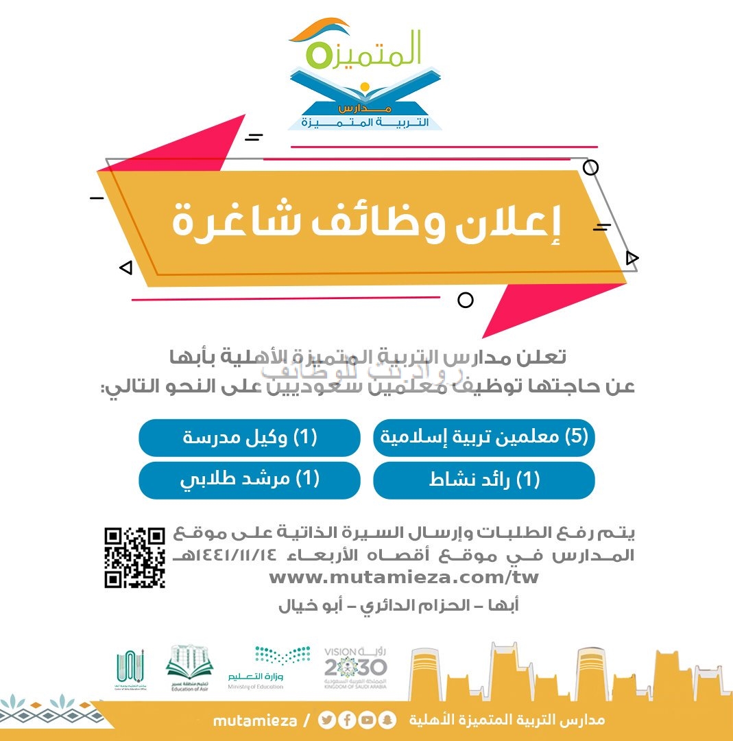 اعلنت مدارس التربية المتميزة في أبها عن وظائف معلمين سعوديين في التخصصات