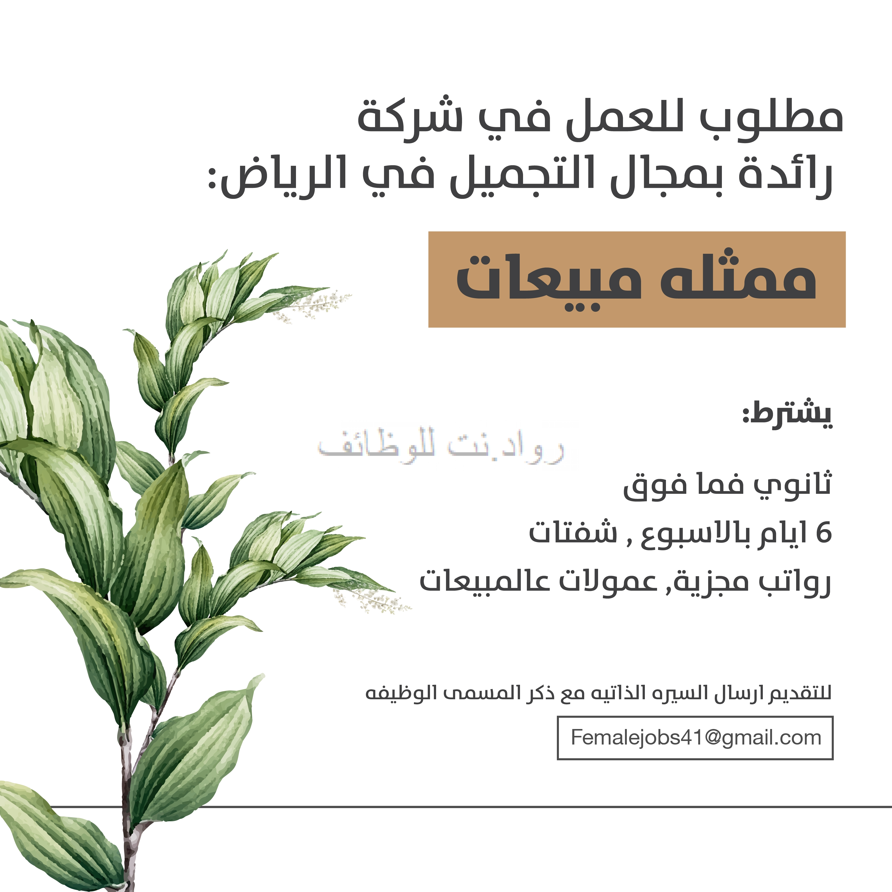 اعلنت شركة تعمل في مجال التجميل في الرياض عن وظائف نسائية بمسمى