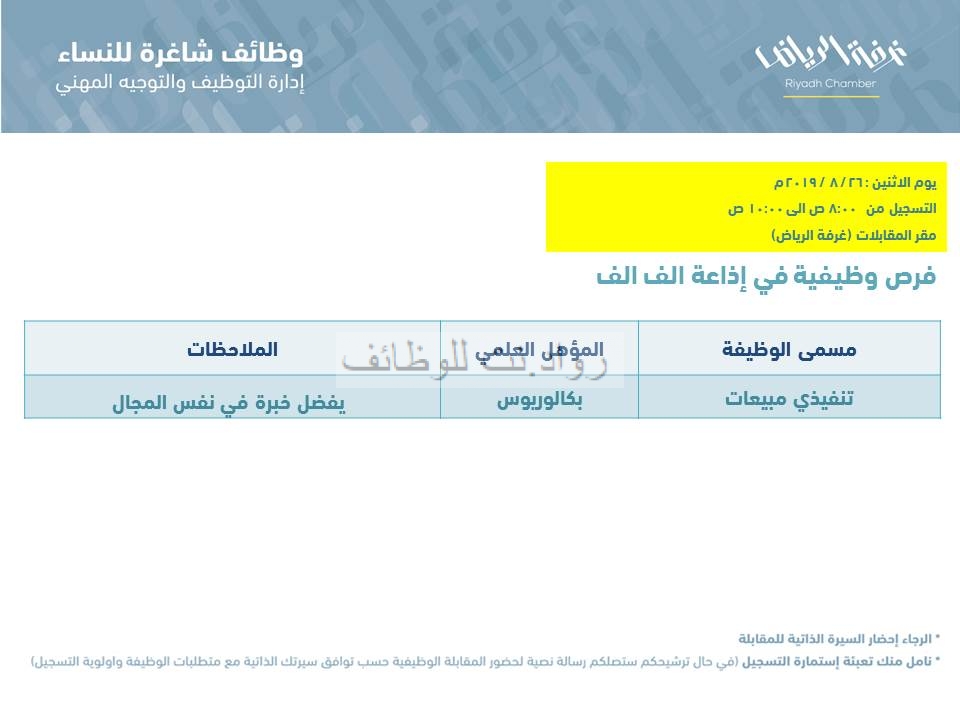 أعلنت إذاعة الف الف عن وظيفة نسائية بمسمى