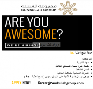 أعلنت مجموعة السنبلة عن وظائف نسائية في جدة