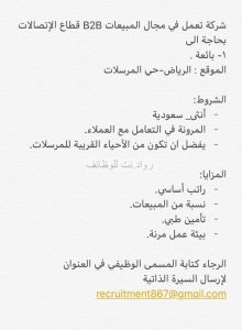 اعلنت شركه تعمل في مجال الاتصالات عن وظيفه بائعه في الرياض حي المرسلات