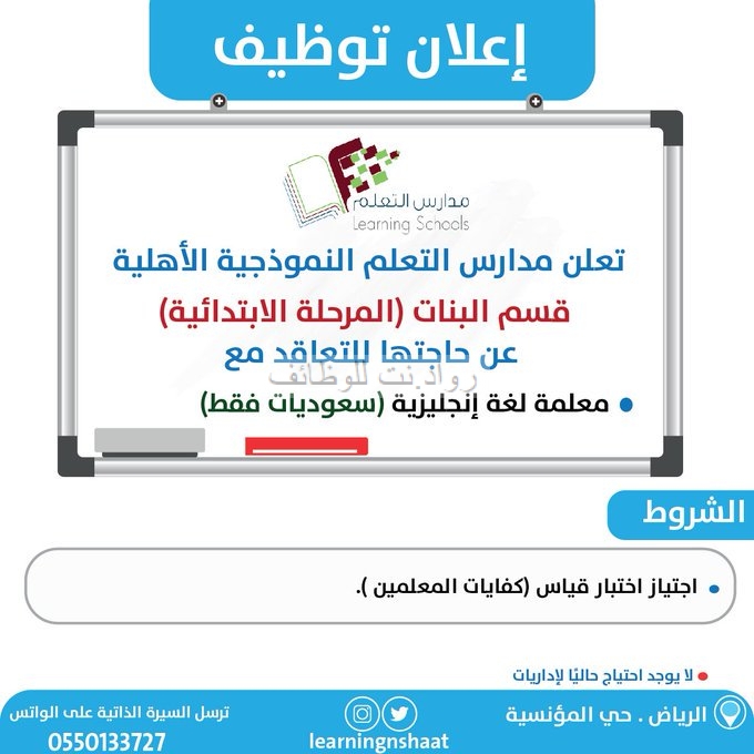 اعلنت مدارس التعليم النموذجية الاهلية في الرياض حي المونسية