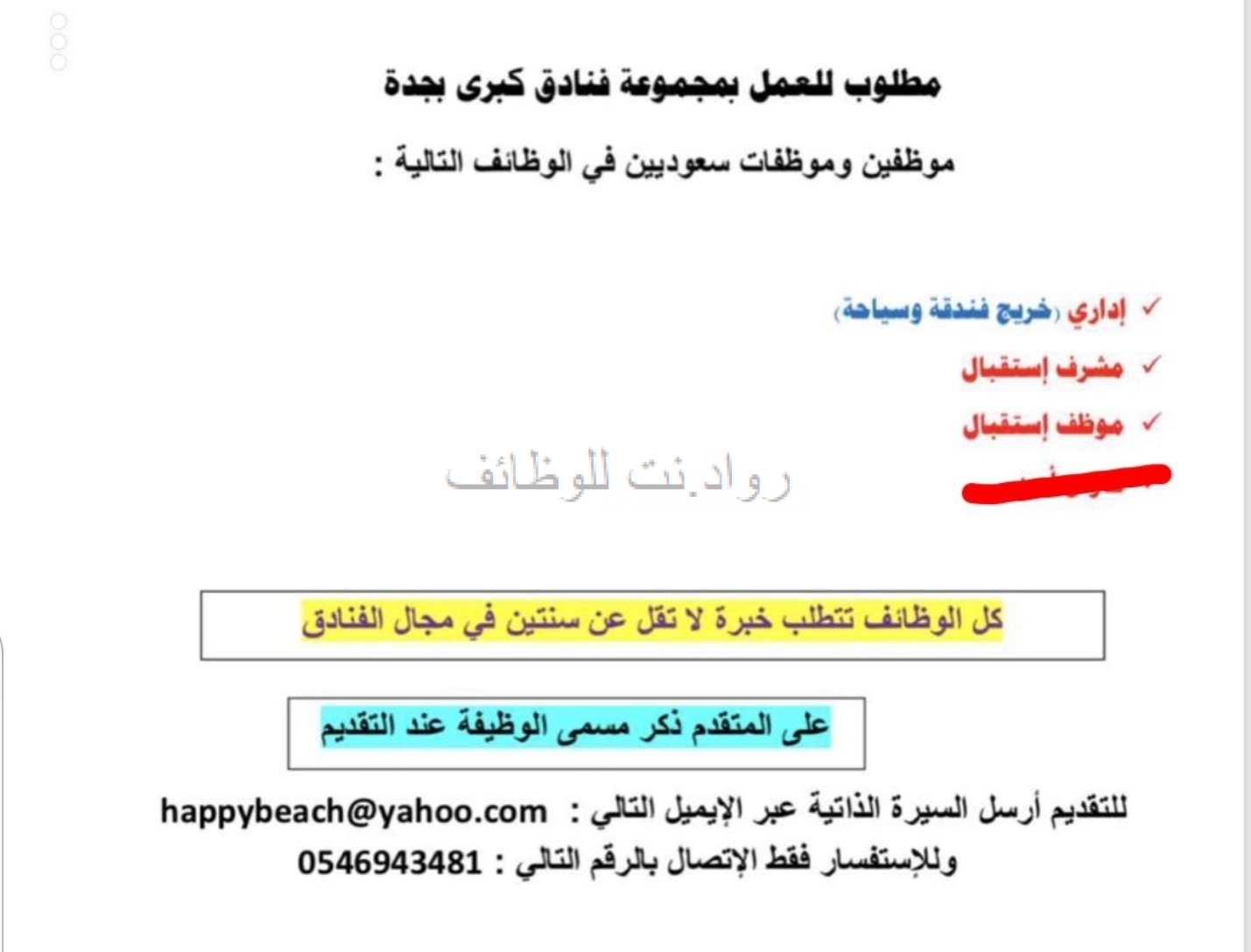 مجموعة فندقية في جدة وظائف استقبال مشرف استقبال للجنسين