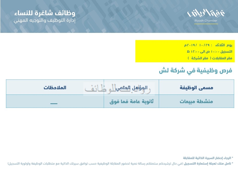 أعلنت غرفة الرياض اليوم بالتعاون مع شركة لش عن وظائف بمسمى