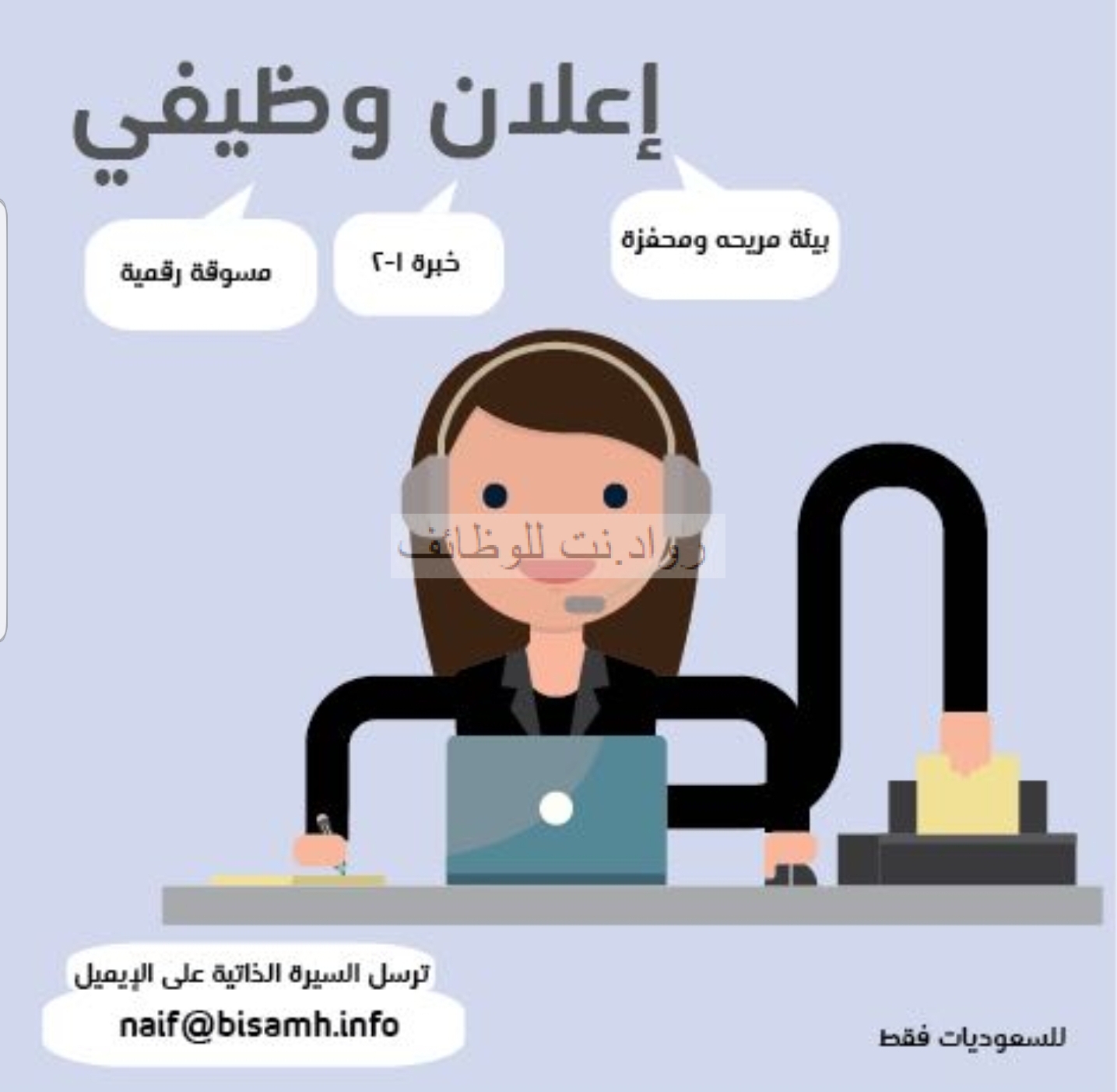 اعلنت احد الجهات عن توفر وظيفة نسائية بمسمى