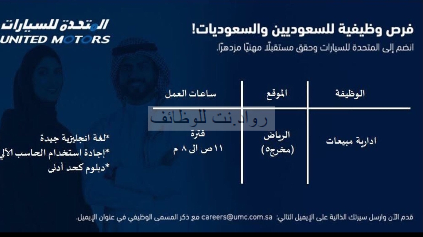 أعلنت المتحدة للسيارات عن وظائف للسعوديين والسعوديات