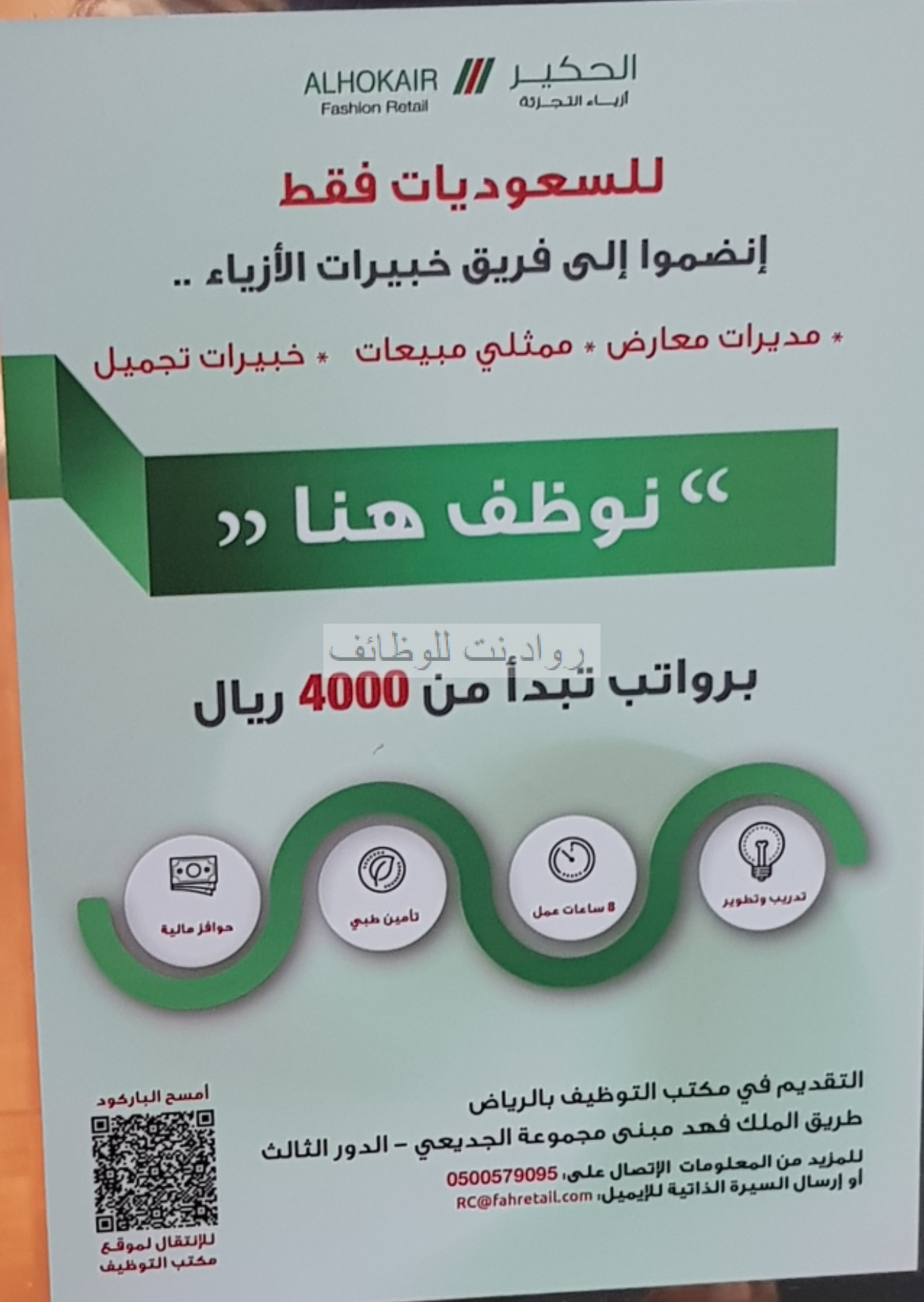 اعلنت الحكير لازياء التجزئة عن وظائف نسائية في الرياض في عدة مولات الوظائف بمسميات