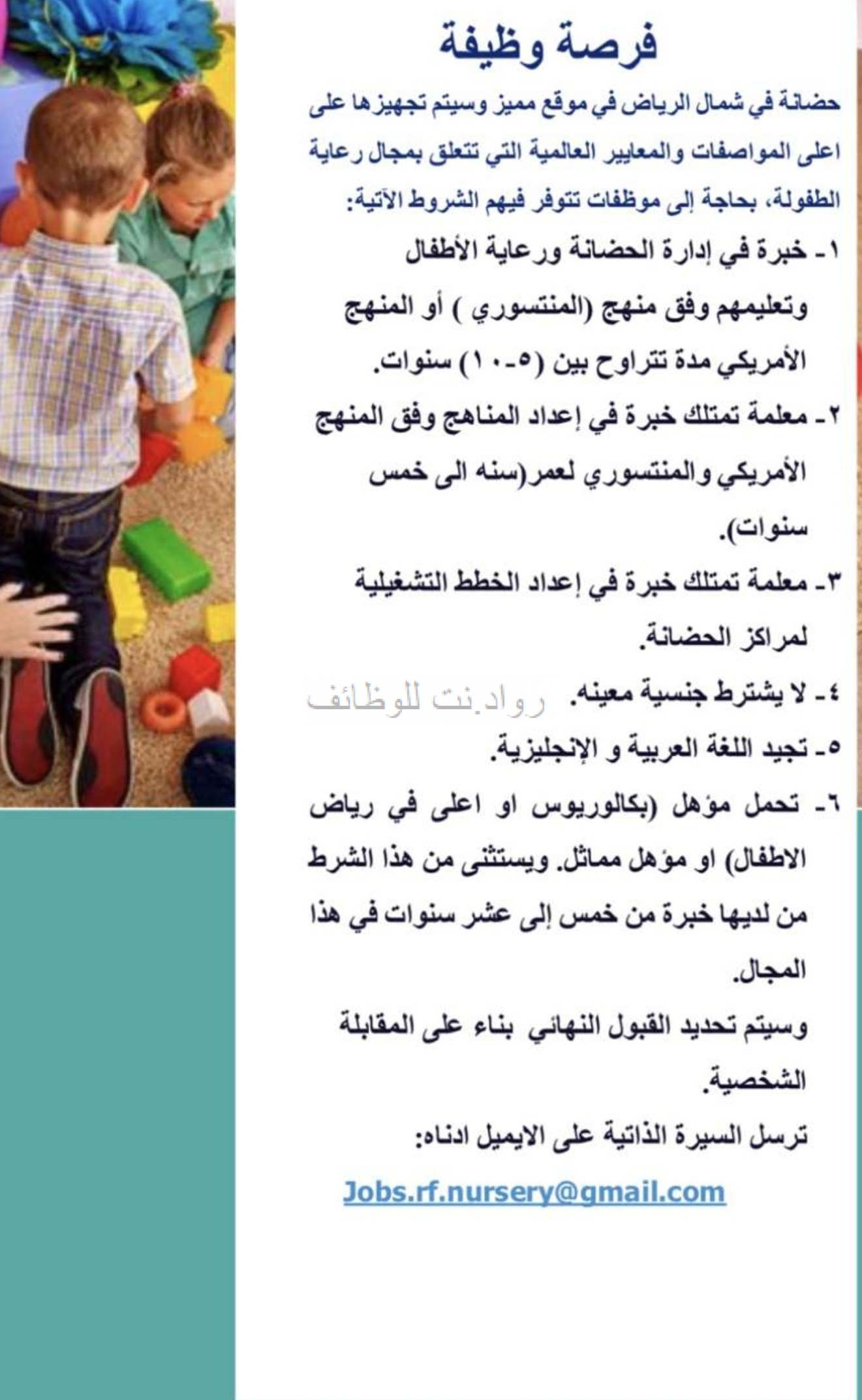 • وظيفة معلمة تربية خاصة في مركز رواد التأهيل