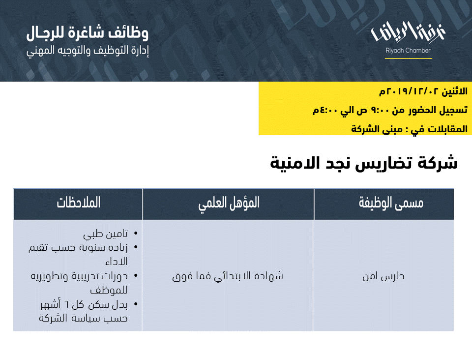 - حارس أمن ويشترط مؤهل الابتدائي واعلى
