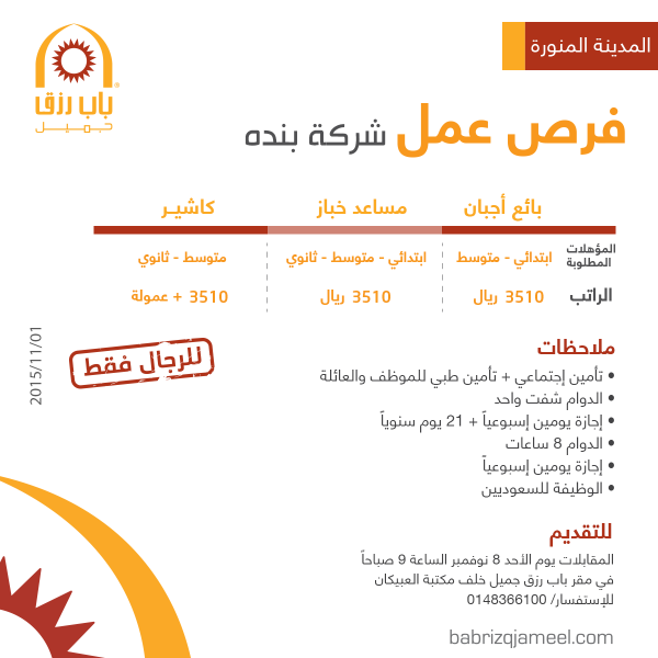 01/11/2015 | أحدث الوظائف اليوم، وظائف المدينة المنورة
