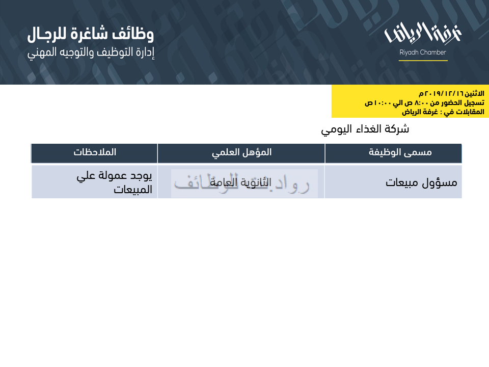 المقابلات ستكون في مقر غرفة الرياض بالاحداثيات