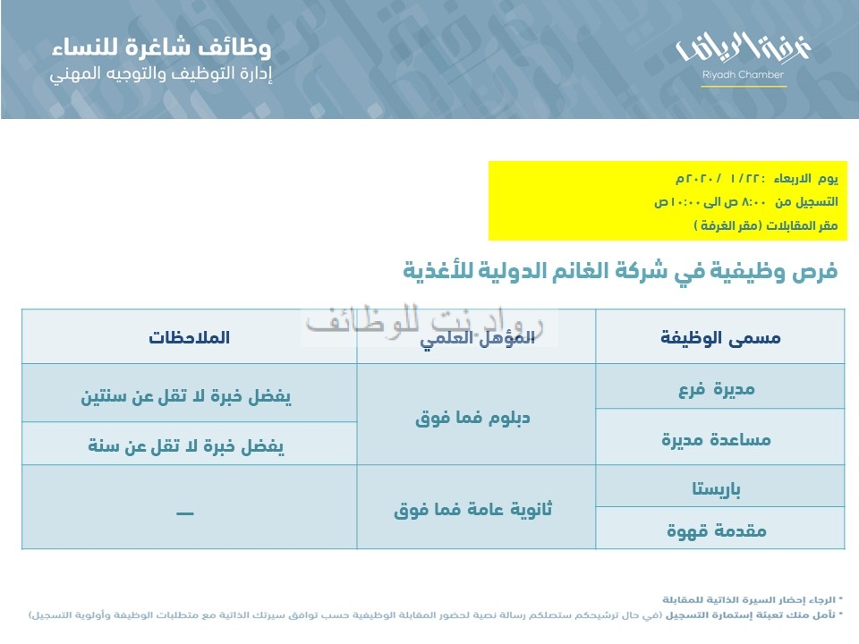 أعلنت غرفة الرياض بالتعاون مع شركة الغانم الدولية عن وظائف بالمسميات