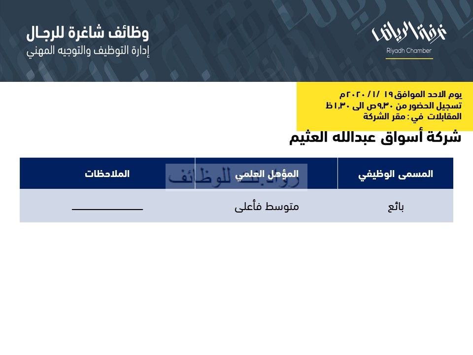 والمقابلات ستكون في مقر شركة عبدالله العثيم بالرياض بالاحداثيات