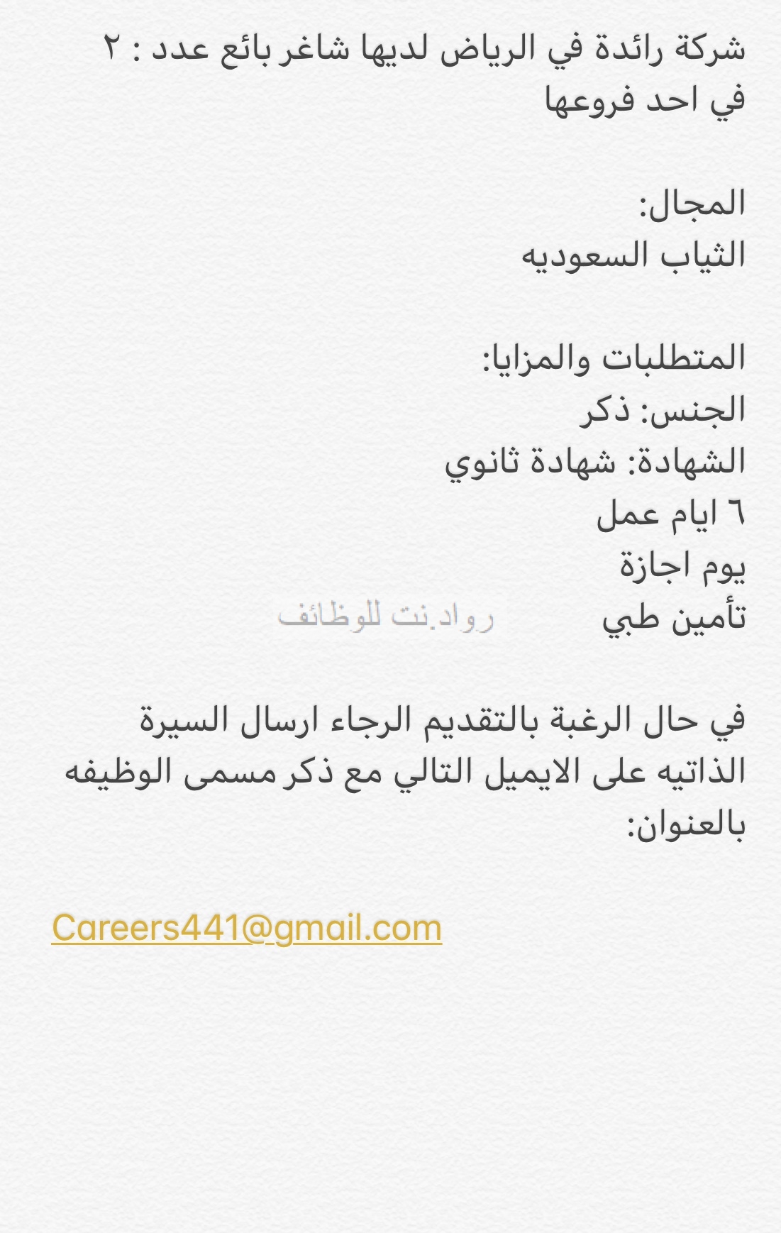 اعلنت شركة رائدة في الرياض عن وظائف بمسمى بائعين في احد فروعها
