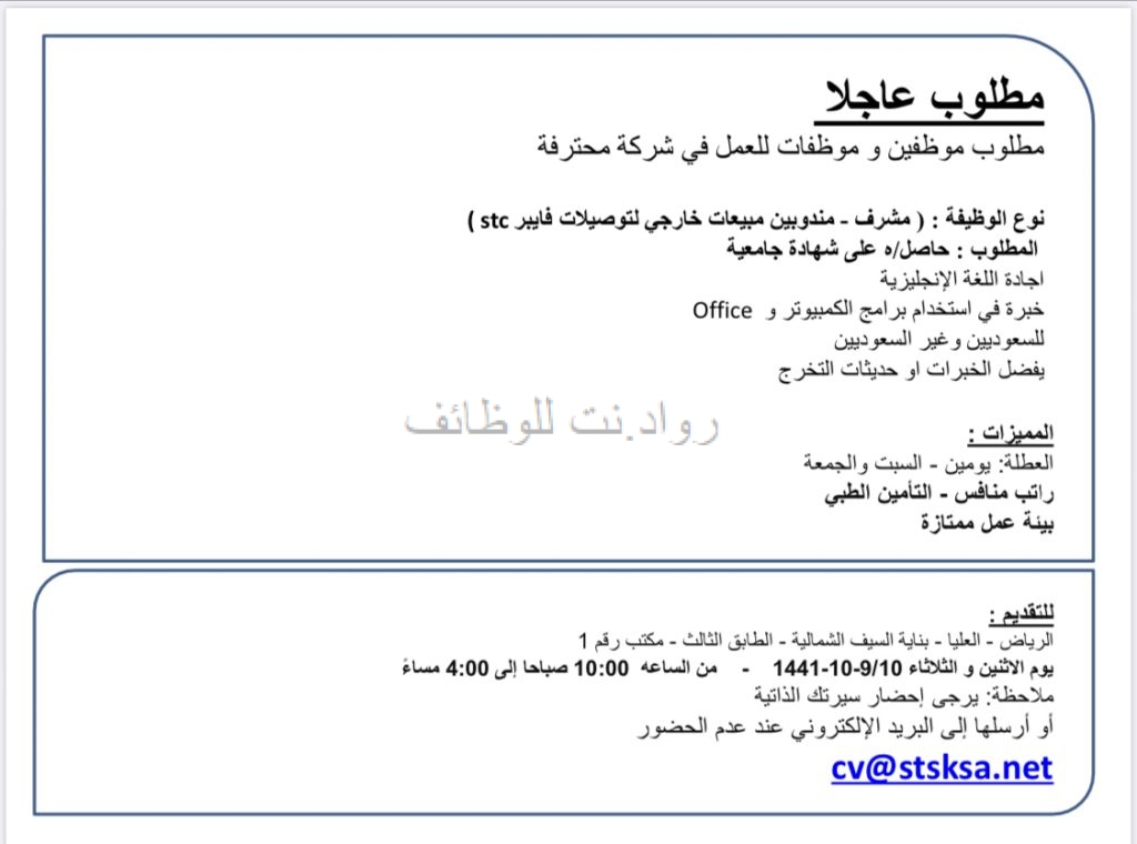 • مندوبين مبيعات خارجي لتوصيل فايبر stc